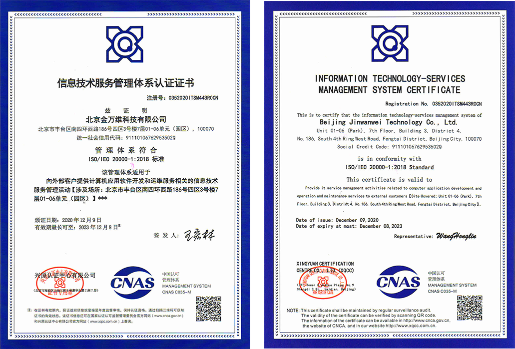 信息技术服务管理体系认证证书