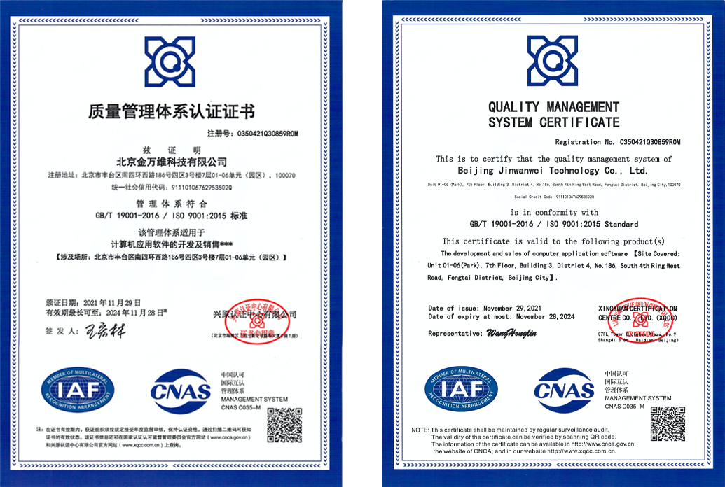 ISO 9001 质量管理体系认证证书